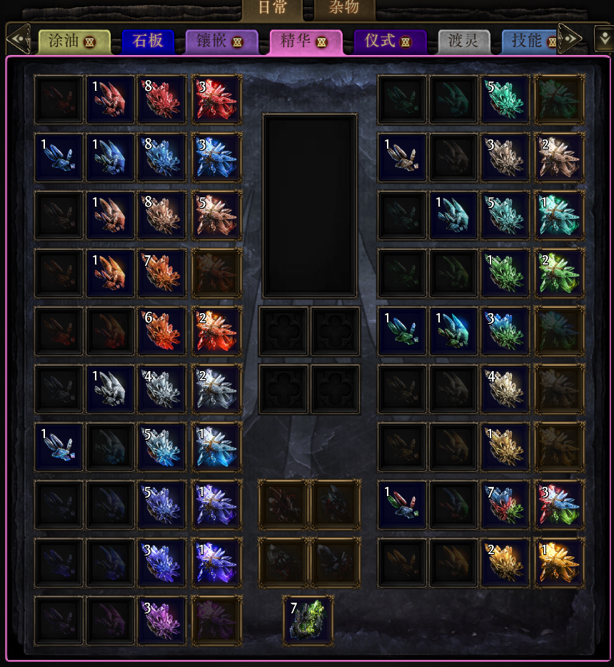 精华仓库也是,物品的种类无法做到对称设计就算了,中间还塞个大格子,导致催化剂无法摆放。