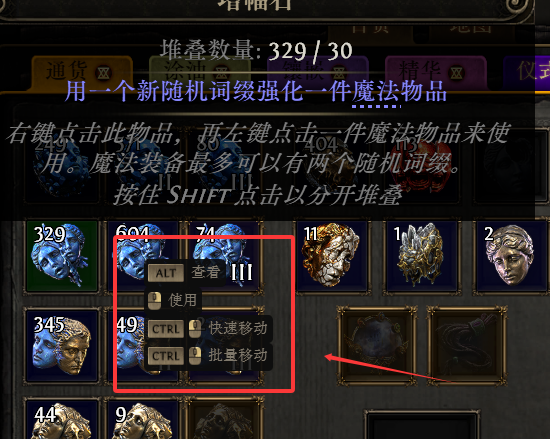 研究了半天一个小技巧,按住shift,点击右键可以持续使用某些通货来强化。