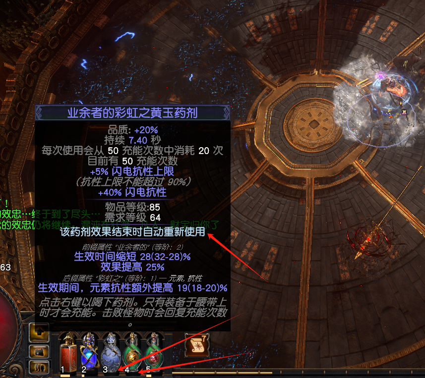 打贪婪祭坛,被传送到boss房间之后,药剂用灌顶石上的 结束时自动使用 会失去作用,并且在进入之后就算手动喝药之后当药剂再次结束时这个附魔依然不起作用.