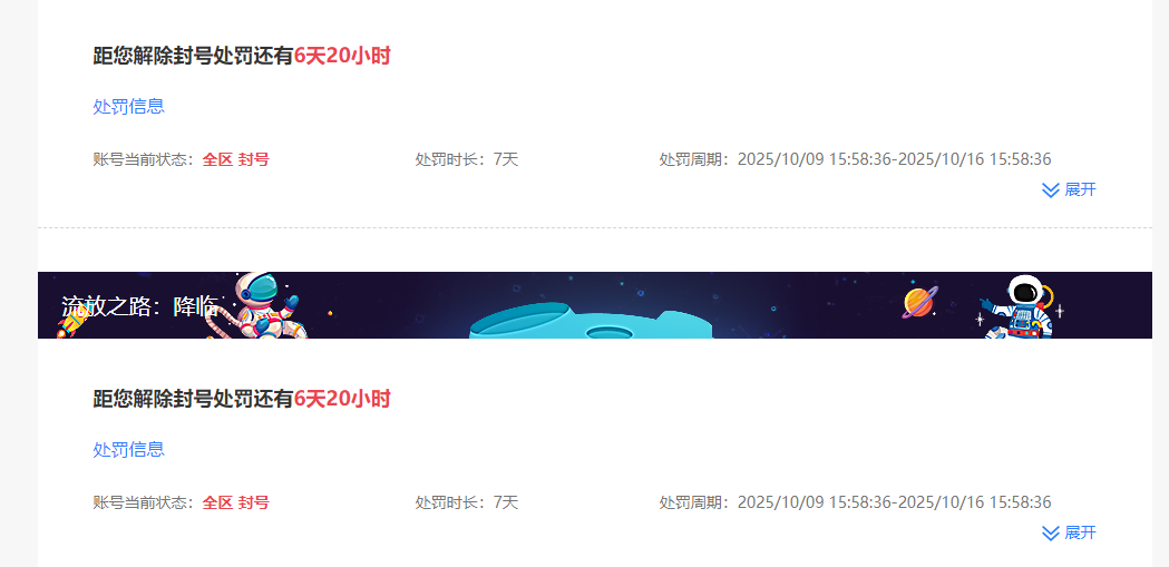 我是《流放之路2降临》的玩家,账号相关信息如下: 游戏账号(QQ):5528257 角色名称:GNT001 升华职业:武僧 所在服务器/联赛:降临 账号封禁时间:2025年10月9日15:58:21 游戏时用了官网工具游戏内的过滤器 别人带我升级 请问客服是什么原因封我号 你给我个证明 我看看什么原因 前次于 2025年10月9日 下午8:16:25 由 GNT001#4476 编缉 最后点赞2025年10月10日 下午3:36:59