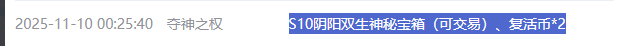 S28开袋有礼活动,开出一个 S10阴阳双生神秘宝箱(可交易)没收到