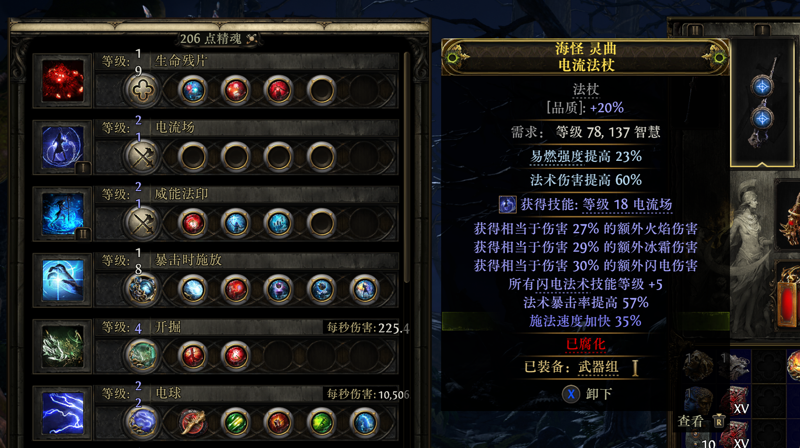 我的闪电技能+5的法杖没有用,技能效果加不到我的技能上