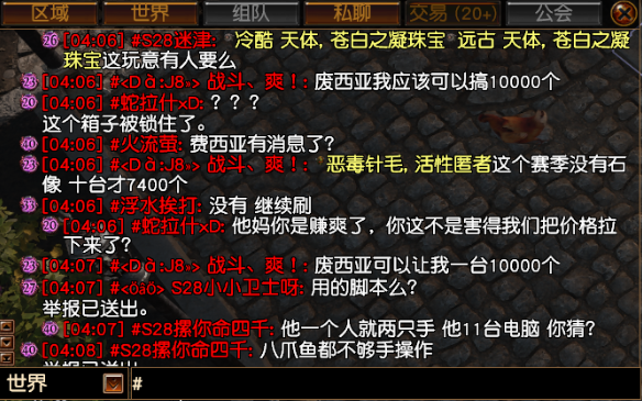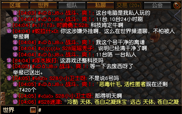 举报玩家“<Dà:J8> 战斗、爽!”涉嫌多台游戏其自动化程序刷取稀有物品获利 • [04:02] #<Dà:J8> 战斗、爽!: 28个双回生超自然这个赛季出了 • [04:02] #蛇拉什xD: ???????? • [04:03] #<Dà:J8> 战斗、爽!: 1废出了61个了 • [04:03] #蛇拉什xD: ??????????? • [04:03] #<Dà:J8> 战斗、爽!: 十台机子 • [04:03] #蛇拉什xD: 滚~ • [04:03] #蛇拉什xD: 人工还是程序? • [04:03] #<Dà:J8> 战斗、爽!: 这台电脑是我私人玩的 • [04:04] #<Dà:J8> 战斗、爽!: 11台 10台24小时刷 • [04:04] #蛇拉什xD: 你这涉嫌外挂啊,这么在世界频道聊,不怕被人举报啊 • [04:04] #<Dà:J8> 战斗、爽!: 我这个号干净的离谱 • [04:04] #<Dà:J8> 战斗、爽!: 11台咯 一台私人 • [04:05] #<Dà:J8> 战斗、爽!: 等一下去废西呀了举报已送出。 • [04:05] #<Dà:J8> 战斗、爽!: 恶毒针毛,活性匿者现在还剩7420个 • [04:06] #<Dà:J8> 战斗、爽!: 废西亚我应该可以搞10000个 • [04:06] #蛇拉什xD: ??? • [04:06] #蛇拉什xD: 他妈你是赚爽了,你这不是害得我们把价格拉下来了? • [04:07] #<Dà:J8> 战斗、爽!: 废西亚可以让我一台10000个 • [04:08] #<Dà:J8> 战斗、爽!: 我在打穿越火线这台机器 刚才那十台让我赚了几百块了 • [04:09] #<Dà:J8> 战斗、爽!: 一个月电费都4000多 • [04:09] #<Dà:J8> 战斗、爽!: 场地自己的 • [04:09] #蛇拉什xD: 举报举报,妈的,你是赚爽了,市场价全给你一个人打下来了 • [04:10] #<Dà:J8> 战斗、爽!: 我这个号干净的很 • [04:11] #蛇拉什xD: 管你干不干净,你说的这些话够查了,查你总IP下面十几个号就行了 • [04:11] #<Dà:J8> 战斗、爽!: 我那十台 一个月有时候封一个号 又要去搞个小号多少都要10块钱成本 • [04:11] #蛇拉什xD: 到时候封你总IP呗 • [04:11] #<Dà:J8> 战斗、爽!: 我已经稳定了5年了 • [04:12] #<Dà:J8> 战斗、爽!: 这有啥 • [04:14] #<Dà:J8> 战斗、爽!: 每天产出差不多700多个未鉴定天神 • [04:16] #蛇拉什xD: 你也别夜里发,明天晚上,后天晚上去费西亚,多发发 • [04:17] #<Dà:J8> 战斗、爽!: 我发啥 我私人电脑开车去了 那十台弄好就不管的 有多少算多少的 • [04:18] #蛇拉什xD: 你别管那么多,你后天晚上费西亚开服人最多的时候把这话发309来 • [04:18] #蛇拉什xD: 看看大家怎么办好吧 • [04:18] #<Dà:J8> 战斗、爽!: 我要是不发呢 • [04:19] #蛇拉什xD: 不发就算了呗,我还能去你家砍死你吗? • [04:19] #<Dà:J8> 战斗、爽!: 你可别惹我是真的 每台机器一个频道都玩死你 • [04:20] #蛇拉什xD: ? 啥? 你能咋玩死我? • [04:20] #蛇拉什xD: 有事世界频道说 • [04:20] #<Dà:J8> 战斗、爽!: 我先去打cf了 • [04:21] #<Dà:J8> 战斗、爽!: 连一套破界套都没有的 都不值得我出手 前次于 2026年2月5日 上午4:52:06 由 血狼之革命#1112 编缉 最后点赞2026年2月5日 上午4:42:41