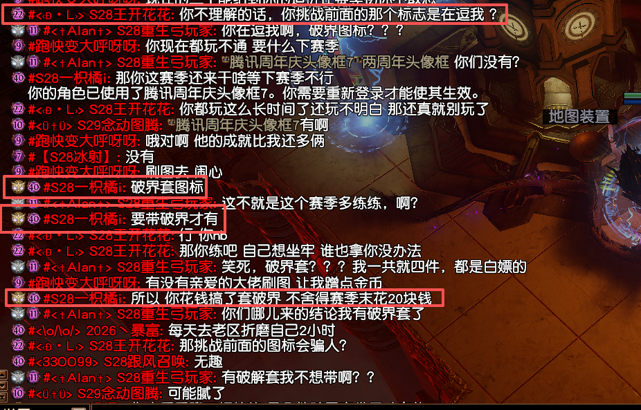 整个事件的起末都在聊天记录的图片里,我是真的绷不住!首先我不知道那个挑战数字前面的标到底是什么意思,其次,我是真气不过,一开始好好的交流莫名其妙就硬要我充钱,说我不差那点,反过来把我拉黑了????现在的大佬都这么有格调吗? 特意发帖请教一下,到底那个标是什么,我是真没有破界套,但是他硬这么说,然后我结合自己的时装存货有一点猜想,我有一套蚩尤和一套雷神,但都不是破界的,是近几个赛季初的蓝色雷神和黄色蚩尤,感觉可能这套装也有标识,而且跟破界套的蚩尤和雷神的标识很相似。猜想可能是对应的蚩尤套或者雷神套的标。 最后点赞2026年4月6日 上午3:26:13